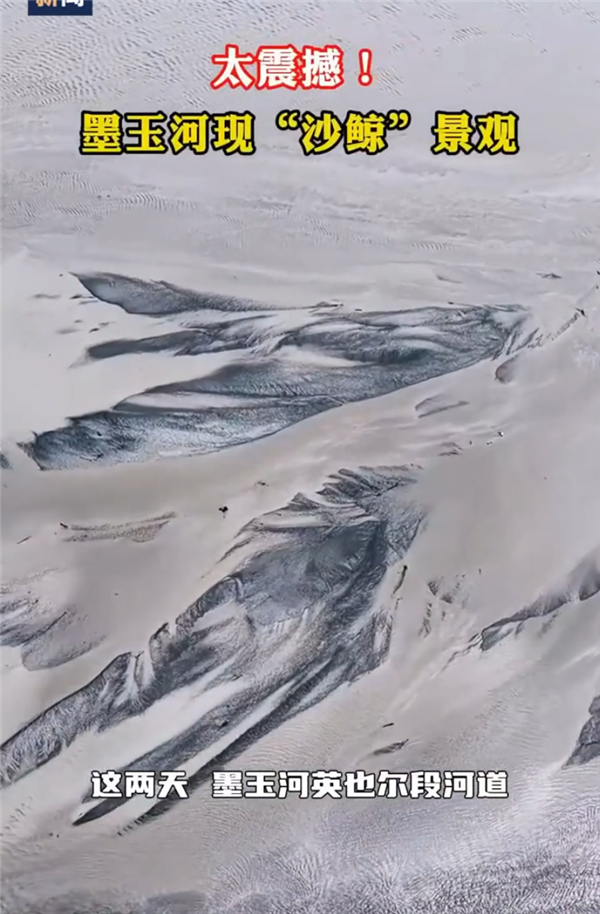 快科技8月22日消息,据央视报道, 近日,新疆墨玉河英也尔段河水渐退,泥沙堆积出“鲸”的形状,犹如巨鲸逆流而上。