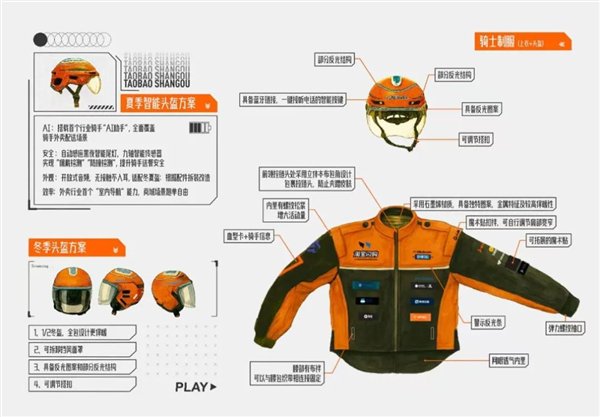 据说,还有配套的智能头盔,能够感应光线变化自动打开头盔尾灯,通过里面搭载的九轴智能传感器,实现“佩戴检测”“防撞检测”,大幅提高骑手送餐安全。