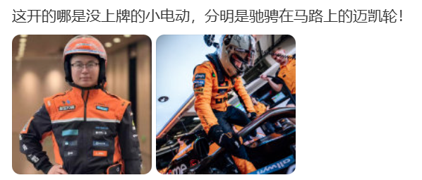 除了一排的帅气,大家已经开始疑惑,送外卖和 F1 还有什么区别?
