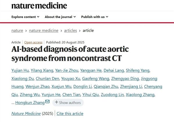 浙大一院与达摩院等机构组建了联合研究团队,首创“平扫CT+AI”识别急性主动脉综合征,帮助医生早期确诊。