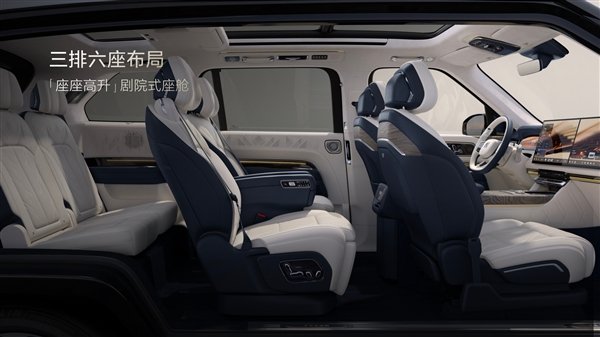 采用三排六座的座椅布局,配备加热、通风和按摩功能,第二排拥有双零重力座椅,座椅可支持180度旋转,以及8个座椅振子可联动屏幕内容实现震动,提升观影沉浸感。