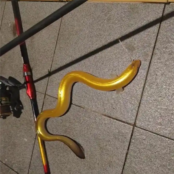 2025年7月,福建的一位钓鱼佬也钓到了一条通体金黄色的鳗鱼,因为黄金般的色泽,也有人称之为“金龙”。