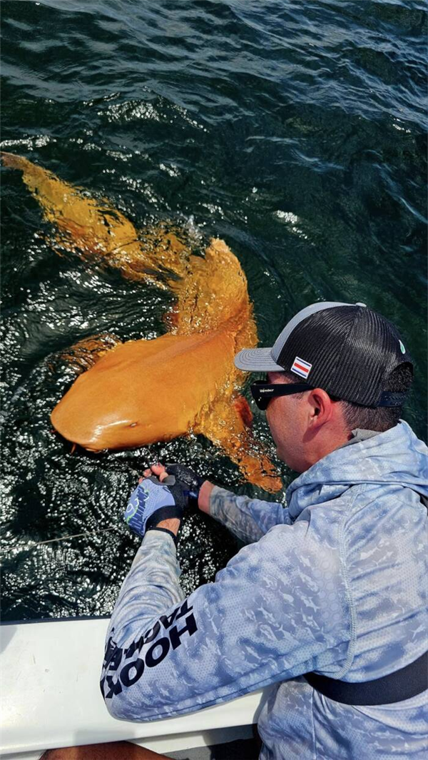 2024年8月,在哥斯达黎加海岸的一次休闲钓鱼之旅中,一位渔民运气爆表,收获了一条罕见的“锦鲨”。