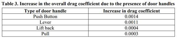 但实际上,2014年有一篇名叫《Re-designing door handles to reduce aerodynamic drag in road vehicles》的论文,分析过不同门把手造型对风阻系数的影响。