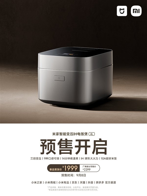 官方强调,这是米家首款智能变压IH电饭煲,首发价1999元,建议零售价是2299元。