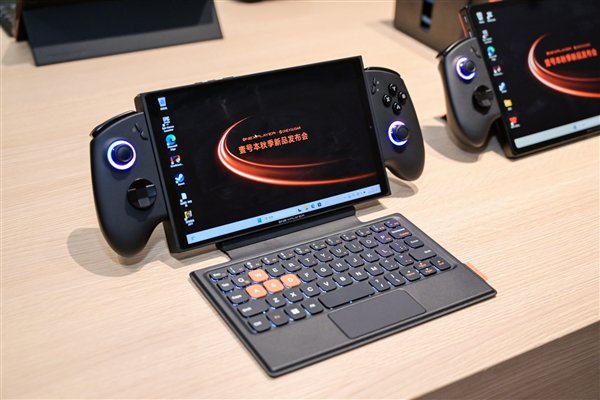 该本采用创新性的多形态设计,通过磁吸键盘与分体式手柄实现笔记本、平板和掌机三种模式的自由切换。
