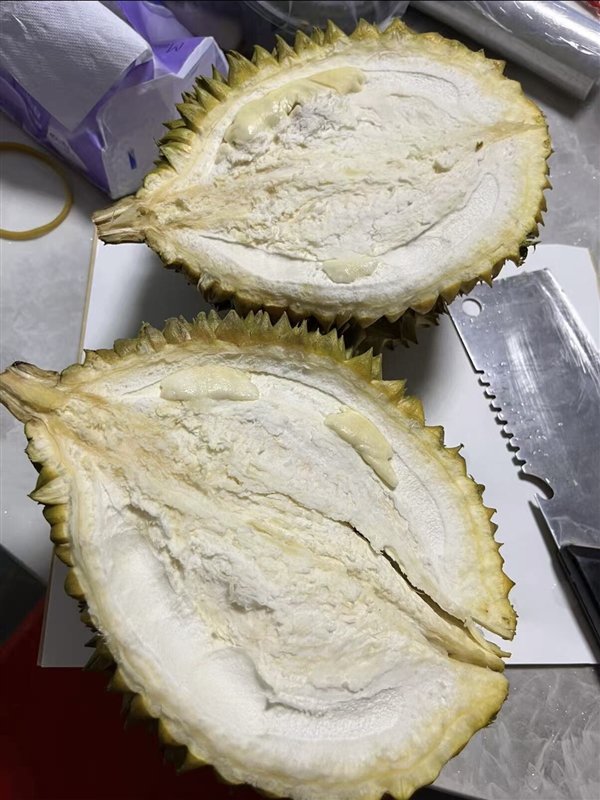 后续,该网友切开两颗榴莲,真的几乎没有肉。