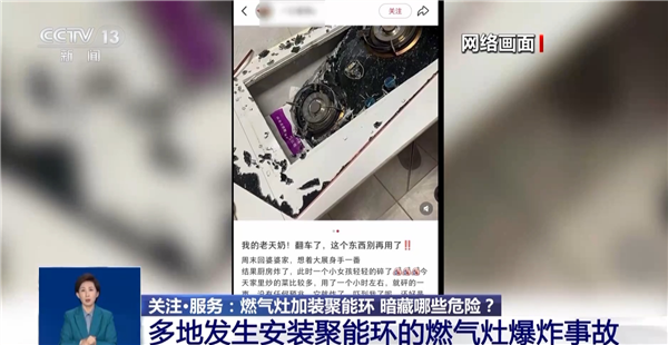 今日,央视新闻报道了燃气灶加装聚能环的问题,并公布多起因加装聚能环导致燃气灶玻璃面板爆裂的案例。