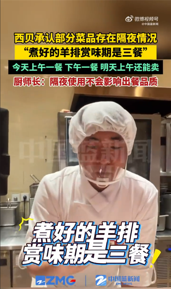 据报道,该店厨师长证实西贝承认部分菜品存在隔夜情况。