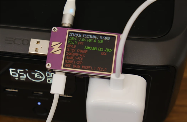 一位海外用户测试发现,其使用的ZY1280测试工具检测到支持USB PD 40W功率,不过该工具无法检测AVS协议。