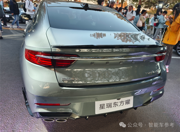 车尾采用扁平尾灯组,中间由镀铬饰条连接;和现款车相比,增加了黑色小型扰流板。