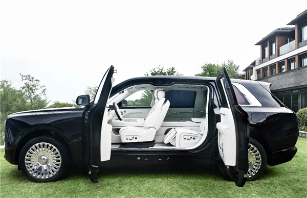 从追觅旗舰SUV的官图来看,第一眼看上去简直像是翻版劳斯莱斯库里南,整车为黑色涂装,外观十分霸气,车头为劳斯莱斯标志性的帕特农神庙前脸设计,极具豪车气场。