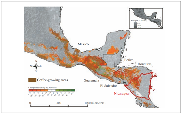 IPCC 预测:到2050年,中美洲大部分咖啡主要产区会因为气候变化,变得越来越不适合种咖啡,尤其是中低海拔地区