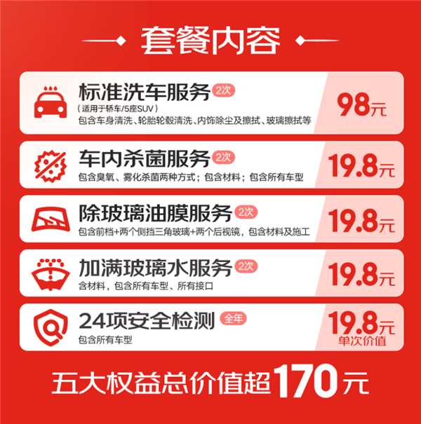 【京东自营】京东养车净护双享套餐价值170元,今日29.9元即可入手,支持不满意重新洗,内含: