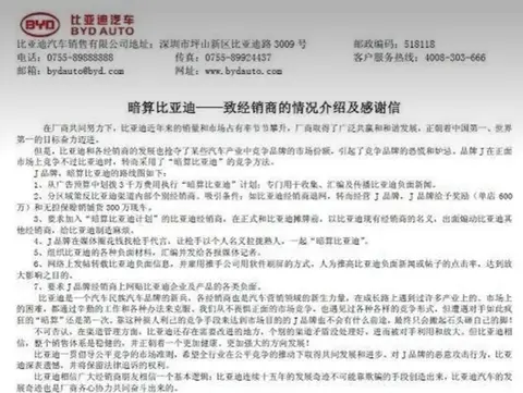 当时因为网分的多,每个网能卖的车就一两款,卖不出去,厂家要求还高,经销商就直接怒了,在 2010 年,吉林、浙江、湖南、山东等地纷纷退网,给比亚迪造成很大伤害。