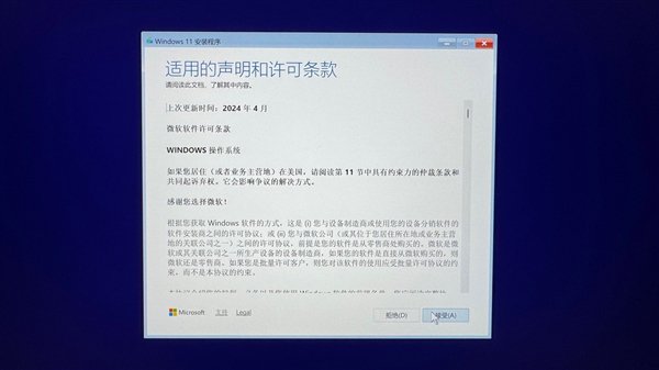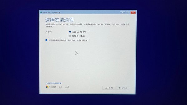 选择安装选项,即安装Windows11并勾选同意下面的选项,因此会删除硬盘中所有的数据。不过我们安装的本来就是块新硬盘,所以不用纠结。