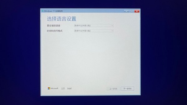 把刚制作好的Windows11安装U盘插到笔记本USB接口并开机。由于我们已经换上了三星990 EVO Plus这块新硬盘,因此BIOS会自动搜寻可引导的存储设备。如果你的U盘被识别到,就会进入到Windows11的安装界面了,先选择默认的语言和货币格式。