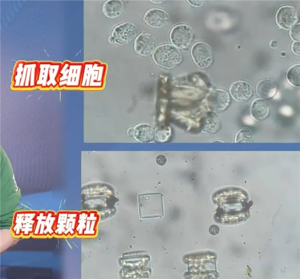 这台小机器人长得像个小夹子,大小只有40微米左右,比一根头发丝还要细。这个夹子其实是一双灵活的“机械手”,它能完成抓取细胞、释放颗粒等精密任务。