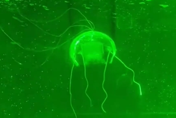 该机器人直径120毫米,重56克,采用团队独创的静电液压肌肉驱动器与水凝胶电极材料,精准模拟了真实水母利用涡环推进的运动姿态,在水下具备高效、近乎无声的“静默”运行能力。