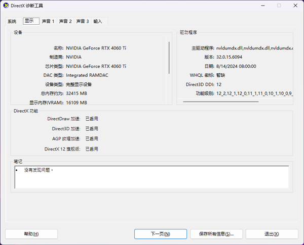 切换到“显示”标签页,查看“功能级别”(例如:11_0、11_1 或 10_1),如果显示包含 11_0/11_1,说明已支持,无需升级。
