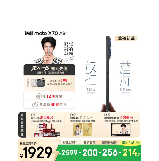 联想moto手机京东自营旗舰店显示,联想moto X70 Air券后叠加国补到手价为1929元、2189元。