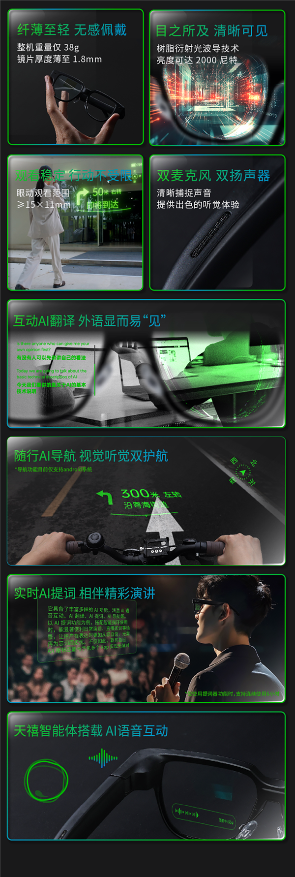 采用莫界科技全球首创的树脂衍射光波导技术,镜片厚度仅1.8mm,在保持最佳光学效果的同时,重量、抗冲击能力突破行业壁垒。