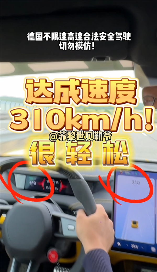 他还特别提到德国高速部分路段不限速,并表示“遵守交规,注意安全”。