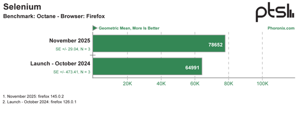 测试仅在软件层面进行了更新,具体为由 Ubuntu 24.04 LTS 系统升级至 Ubuntu 25.10 系统,并采用 Linux 6.18 Git 内核。