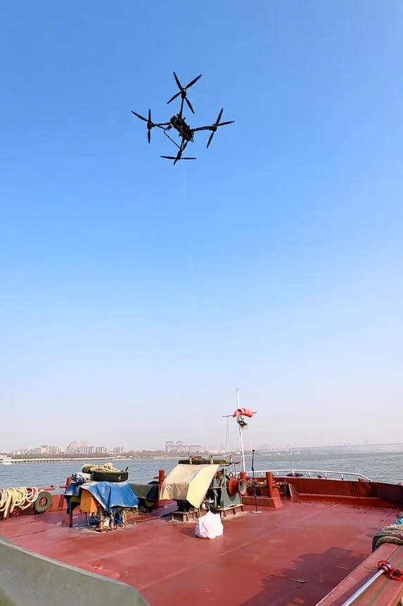 据了解,今年8月起,长江南京段率先开通“无人机外卖服务”,随后扩展至荆州等水域,船员通过手机下单,无人机短时间内就能将食物、日用品精准投送至航行中的船舶甲板。