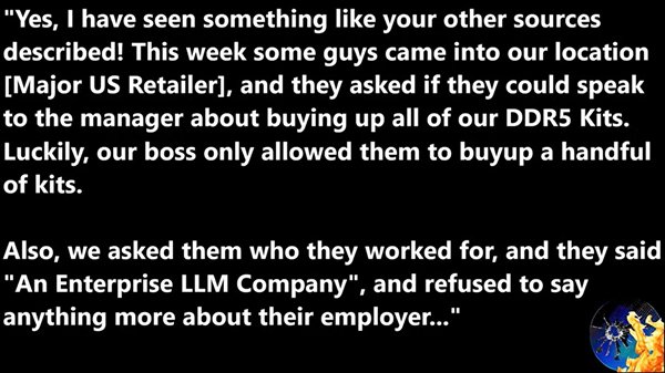 MLID从多个渠道,包括零售商和内存供应商处获悉,OpenAI的员工被看到走进零售店,试图尽可能多地购买DDR5内存。
