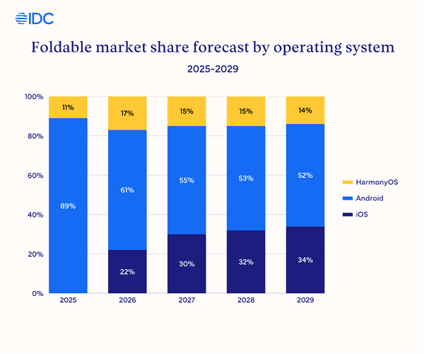 IDC预测2025年全球折叠屏智能手机出货量达到2060万台,同比增长10%,并认为得益于硬件创新与巨头入局,2026年会成为市场真正的转折点。
