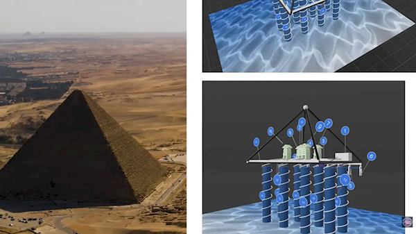 哈夫拉金字塔底部约640米处出现了一大片巨大的石灰石平台,其中包含两个80米见方的长方形房间,并连接着8条直径在10至12米之间的圆柱竖井。
