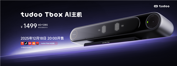 这款融合了AI智能与多模态交互的“新物种”,不仅打破了传统电视只能“看”的功能局限,更标志着家庭娱乐迈入“玩电视”的新时代。据了解,tudoo Tbox标准版定价1499元,将于12月18日20:00在全网各大电商平台正式开售。