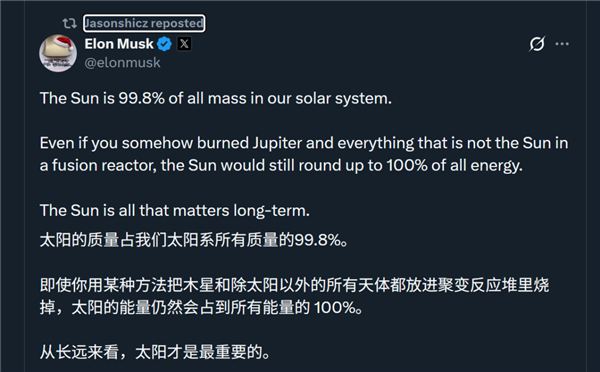 后又在谷歌宣布太空数据中心计划时留下“Interesting”这样的评论,明确肯定了谷歌的眼光。