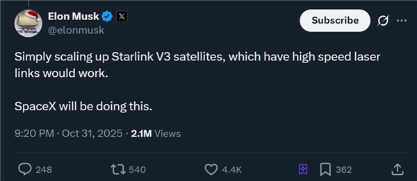先是确认SpaceX未来将在太空部署数据中心: