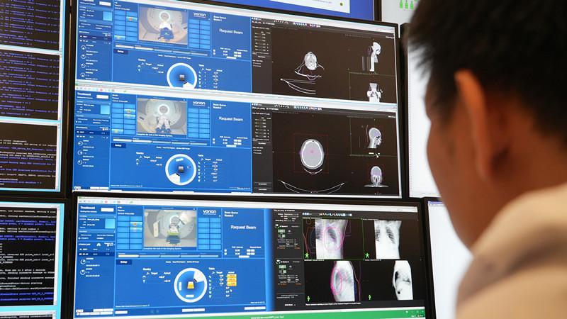 据介绍,该中心拥有三个治疗舱和一个临床研究舱,各舱之间通过高速束流切换系统共用核心“刀魂”(220兆电子伏超导回旋加速器),实现多舱“并行作战”。