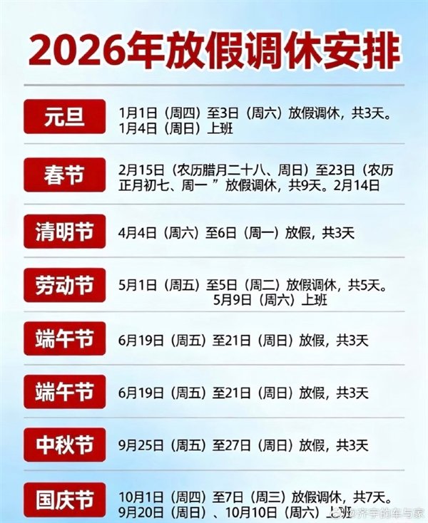 最后奉上2026年放假日历一图,大家可以感受下: