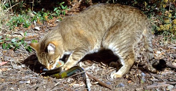 至于怎样清除,目前正在考量的几种备选方案,比如用带毒的香肠,或者用一种安装在树上的装置,一旦野猫从旁边经过,装置就会喷洒毒药。