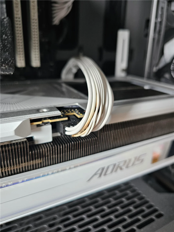 不过评论区部分网友指出了细节,从照片来看,楼主似乎过度折弯了供电线材,大多数显卡厂商通常建议在弯曲12V-2x6线材前,至少预留35毫米的直线空间,但Alfredwooden显然没有遵循这一建议。