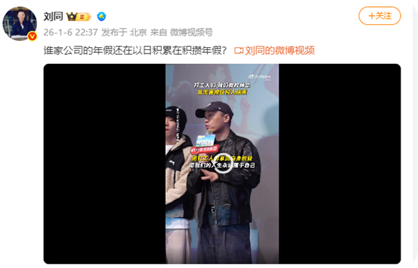快科技1月7日消息,近日,光线影业副总裁刘同在社交媒体发视频,并配文称“谁家公司的年假还在以日积累在积攒年假?”