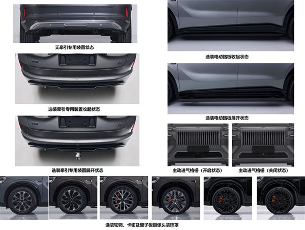 动力部分,该车配备2.0T插混系统,发动机最大功率为205kW,大概率全系标配前后双电机,同时用上闭式空悬、电磁减振等,至于会不会配备9X Hyper同款48V电子防倾杆目前不得而知,即便是提供,大概率也仅供顶配。