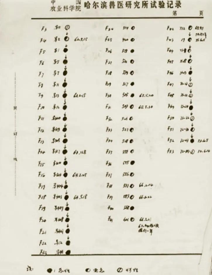 更令人称道的是沈荣显的实验记录,堪称“科学的艺术”。翻开他20世纪70年代的实验记录,隽秀的字体,配着一匹匹小马的插图——100多代病毒在这些小马身上变异情况的示意图,甚至连细枝末节都会记录其上,这分明就是一本手写的书。至今,这些手记在哈尔滨兽医研究所,不仅是一处让人赞叹的“景观”,更是一种无声的鞭策。