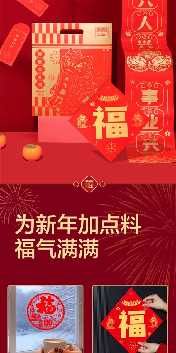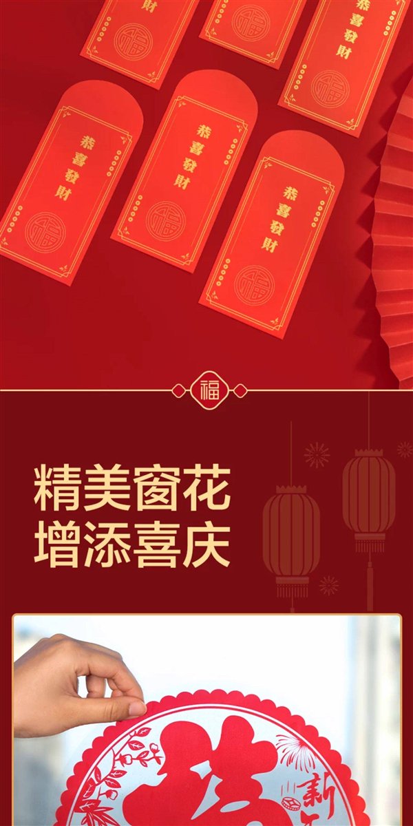 另有窗花、无痕对联胶带、福卡、财神冰箱贴等可选。
