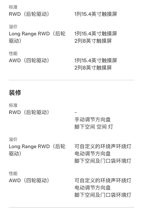 阉割的配置的确不少,但架不住价格香,从各个地区上市的标准版Model 3配置上,不难推测出接下来中国市场的标准版Model 3配置大体是一个什么样的水平。