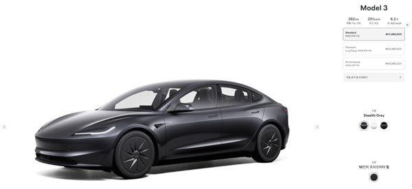 韩国的Model 3“廉价版本”被特斯拉官方定名为Model 3 Standard RWD(标准后驱版),下单后预计1-3个月交付。