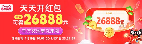 此外,天猫超级红包已在1月19日开抢,面额至高26888元。