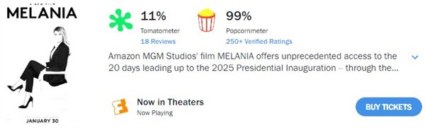 与高调宣发形成强烈对比的是,影评人对《梅拉尼娅》极尽讽刺揶揄之能事,尤以英国媒体为甚。