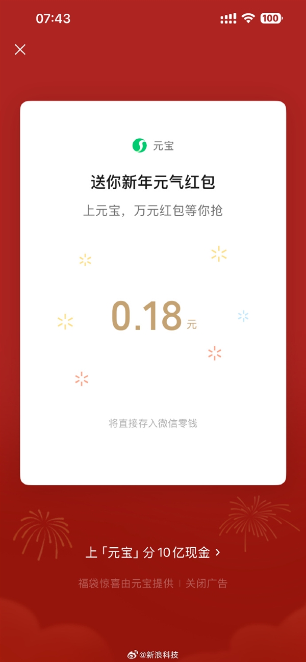 腾讯也于当天凌晨公布了抢10亿红包的官方攻略,用户将元宝App更新到2.55.0版本以上,进入首页点击底部「抢10亿」,即可进入新春活动主会场。