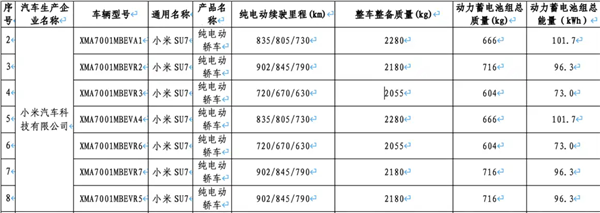 快科技2月10日消息,今日,工信部发布了《减免车辆购置税的新能源汽车车型目录(第二十七批)》,其中披露了新一代小米SU7的续航信息。