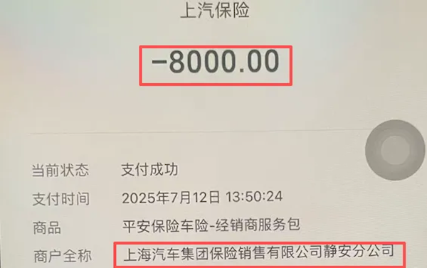查询付款记录发现,收款方是上海汽车集团保险销售有限公司静安分公司。